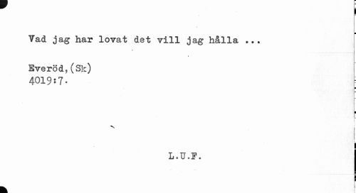 //// I ¦ //// Vad jag har lovat det vill jag hålla //// i //// • i //// Everöd, (Sk) //// 4019:7- //// ¦ //// j //// ii //// [ //// | //// ) //// v //// i //// L.U*F. //// i i ////