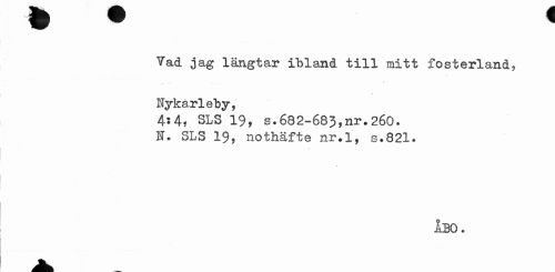//// Vad jag längtar ibland till mitt fosterland? Uykarleby, //// 4:4, SLS 19, s.682-683,nr.260. //// U. SLS 19, nothäfte nr.l, s.821. //// ÅBO. ////