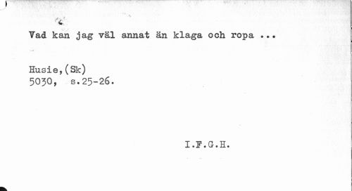 //// ' i //// sy //// Vad kan jag väl annat än klaga och ropa //// v » //// Husie,(Sk) 5030, s.25-26. //// I»F*Gr.H* ////