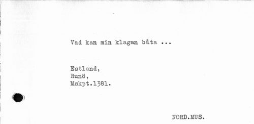 //// Vad kan min klagan båta •.. //// Estland, Runö, //// Mskpt.1381. //// am //// NORD.MUS. ////