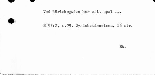//// Vad kärleksguden har sitt spel ^^ B 98:2, s*23, Syndabekännelsen, 16 str* //// ra. ////