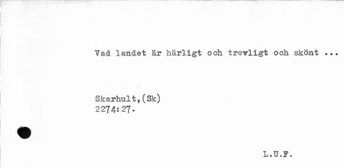 //// Vad landet är härligt och trevligt och skönt ... //// ___... s it //// Skarhult,(Sk) //// 2274:27- //// L.U.F. ////