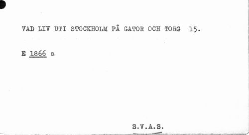 //// w //// TAD LIT UTI STOCKHOLM PÅ GATOH OCH TOSG 15. E 1866 a //// i //// * i //// i //// S.V.A.S. ////