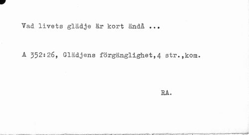 //// Tad livets glädje är kort ändå A 352:26, G-lädjens förgänglighet,4 str.,kom. //// RA. ////