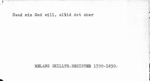 //// y //// ¦ //// EEwad min Gud will, allid det sker //// ¦ //// melabg skilltk.begistek 1700-1830. j ////
