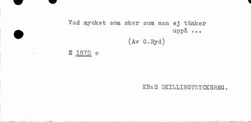 //// Vad mycket som sker som man ej tänker ^^ uppå . . . //// (Av G.Ryd) //// E I8?0 s //// KB:S SKILLINGTRYCKSREG? ////