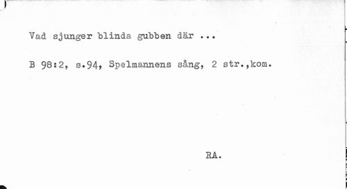 //// Vad sjunger blinda gubben där .. ? B 98s2, s»94> Spelmannens sång, 2 str.,kom. //// ¦ //// RÅ. j //// r //// r //// i i //// L ////