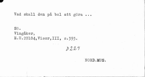 //// Vad skall den på bal att göra ... Sö. //// Vingåker, //// E.TJ.20184,Visor,III, s.393. //// 10ED.MUS. //// 1 //// \ //// ___ _ ___ ___. . ___Liih___ ////