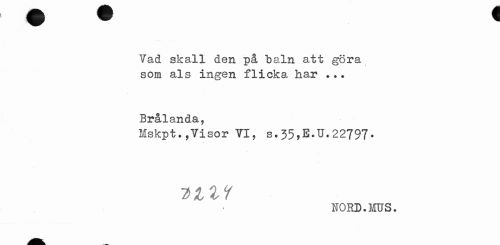 //// Vad skall den på baln att göra som als ingen flicka har ... //// Brålanda, //// Mskpt.,'Visor VI, s.35,E.U.22797- //// 2mt //// HORD.MUS. ////