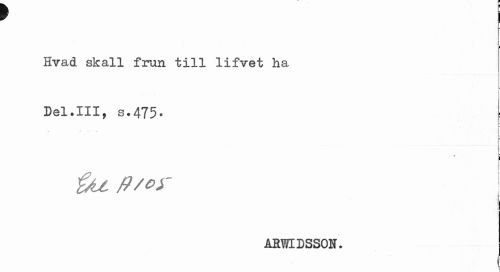 //// f //// ¦ //// Hvad skall frun till lifvet ha Del.III, s.475* //// •y. .% « - //// -i //// p/oy //// ARWIBSSON. //// ! ////