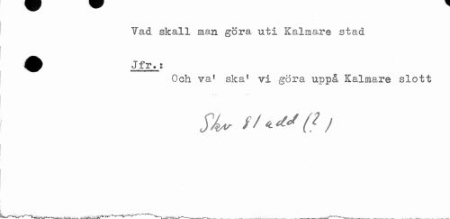 //// Tad skall man göra uti Kalmare stad //// Och va1 ska1 vi göra uppä Kalmare slott //// JV t/ //// ---___ ___ ___^--—___ . .___ ////