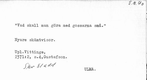 //// c.r a //// i //// i //// "Yad skall inan göra med gossarna små*11 //// Nyare skämtvi sor? //// Upl.Vittinge, 2371*2, s.4»Gustafson. //// J * ULMå. ; //// i I //// I ////
