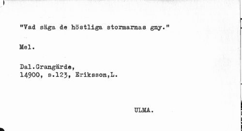 //// ¦ //// "Vad säga de höstliga stormarnas gny,® Mel* //// Dal•Grangärde, //// 14900, s.123, Eriksson,L. //// r ¦ //// TJLMA. j ////