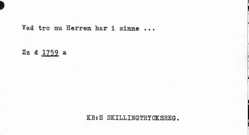 //// w \ //// Vad tro nu Herren har i sinne ... Zz d 1759 a //// -i //// v //// KB:S SKILLINGTRYCKSBEG. //// i i //// i ////