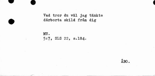 //// Vad tror du väl jag tänkte ^^ därborta skild från dig //// MU. //// 5:7, SLS 22, s.184. //// ÅBO. ////
