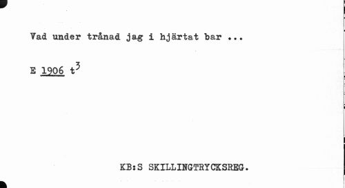//// i //// i //// i //// ... //// i //// Vad under trånad jag i hjärtat bar ... E 1906 t5 //// I //// KBsS SKILLINGTRYCKSREG. //// .. . t //// k ////