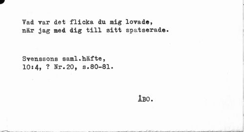 //// Yad var det flicka du mig lovade, //// när jag med dig till sitt spatserade. i //// Svenssons saml.häfte, 10$ 4» ? Nr.20, s*80-81. //// ÅBO. ////