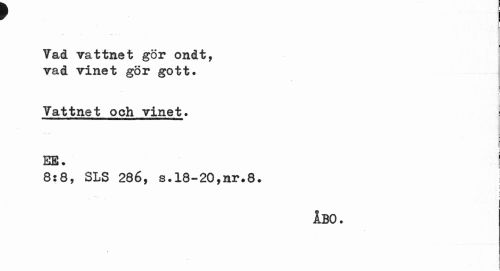 //// f I //// Yad vattnet gör ondt, vad vinet gör gott. //// i //// Yattnet och vinet. //// EK. //// 8:8, SLS 286, s.18-20,nr.8. I //// j //// ÅBO. //// i //// i ////