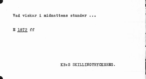 //// ! //// Vad viskar i midnattens stunder ... E 1872 ff //// I //// - //// KBsS SKILLINGTRYCKSHEG. //// k ////