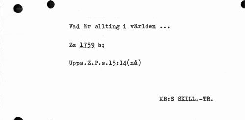 //// Yad är allting i världen .•. //// . - v //// Zz 1759 b; //// Upps.Z.P.s.l5:14(nå) //// KB:S SKILL.-TR. ////