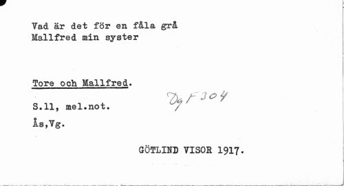 //// Yad är det för en fåla grå Hallfred min syster //// fore och Mallfred. //// 7)* 1V //// S. 11, mel.not. is ,Vg. //// GÖfLIHD YISOB 191J. ////