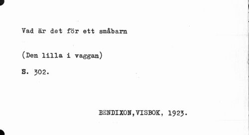 //// I //// Vad är det för ett småbarn //// (Den lilla i vaggan) S. 302. //// BSNDIXOH,VISBOK, 1923. //// k ////