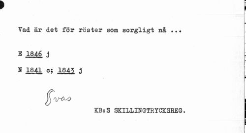 //// I //// Vad är det för röster som sorgligt nå ... e 1846 j //// N 1841 c; 1845 j //// ! //// jj) 0/-A-4 j //// kb:s sxillingtrygksreg. ////