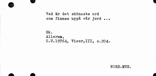 //// Tad är det skönaste ord som finnes uppå vår jord •.. //// Sk. //// Allerum, //// E.TJ.I9764, Visor,III, s.204* //// HORD.MUS. //// a A M ////
