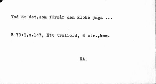 //// I i //// Yad är det,som förmår den kloke jaga ... B 70:3,s.147, Ett trollord, 8 str.,kom. //// i [ //// I //// f //// RA+ //// 1 //// 1 ////