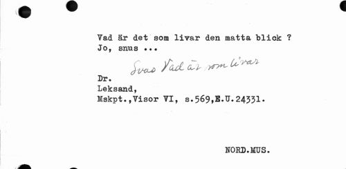 //// Vad är det som livar den matta blick ? Jo, snus //// Ad i* //// Dr. //// Leksand, //// Mskpt.,Visor VI, s.569,E.U.24331- //// NORD.MUS. ////