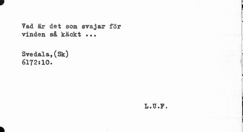 //// — i //// Yad är det som svajar för vinden så käckt ?•. //// Svedala,(Sk) 6172:10. //// i //// L.U.F. //// B j //// | //// r //// k ////
