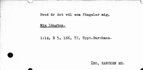 //// ^ / //// Hvad är det väl som fängslar mig, Min längtan. //// 1:14, K 5, 166, 72, Uppt.Burchman. //// 1 B //// / //// ÅBO, RANCKEN MS. ////