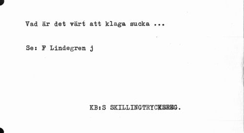 //// v //// Yad är det värt att klaga sucka . • • Se: F Lindegren j //// KBsS SKILLINGTRYCKSBEG. //// k ////
