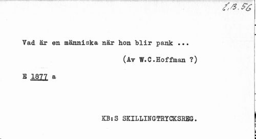 //// Vad är en människa när hon blir pank //// (Av W.C.Hoffman ?) //// E 1877 a //// O:S SKILLIHGfEYCKSRES• I //// ! ////