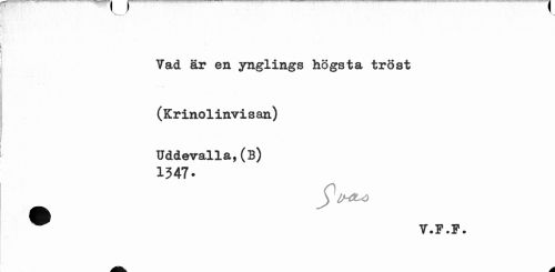 //// v //// Vad är en ynglings högsta tröst //// ( Kr inol invi s an) Uddevalla,(B) //// 1347- //// y1/4U) //// ^ V.F.P. ////