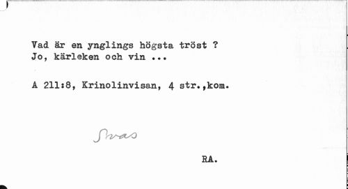 //// Yad är en ynglings högsta tröst ? Jo, kärleken och vin •.. //// 1 211:8, Krinolinvisan, 4 str»fkom. //// J^si^tsO //// Rå. | //// ¦ //// 1 ////