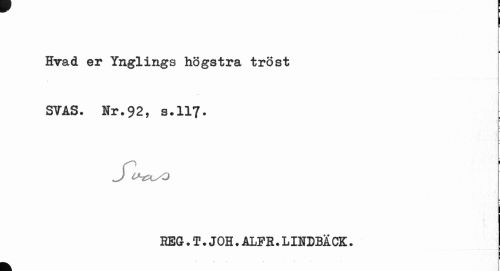 //// I //// i //// Hvad er Ynglings högstra tröst //// SVÅS. ir.92, s.117. //// BEG. T. JOH. ALFB. LIIDBÄCK • ////