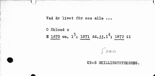 //// ./ "v* //// Vad är livet för oss djLlst • • # 0 Eklund c //// E 1870 nu, l5? 1871 dcL,1872 ii //// I //// f IrfLO //// ® KBiS SKILLINGTRYCKSBEG. //// - M ////