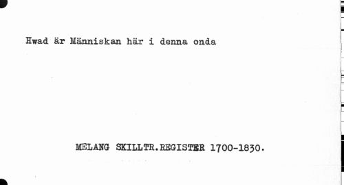 //// I //// _ //// Hwad är Människan här i denna onda //// i //// ¦ //// MSLANG SKILLTR.REGISfER 1700-1850. J //// x //// k ////