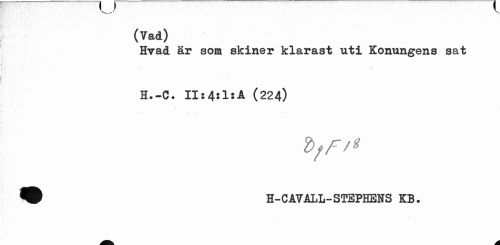 //// (Vad) //// Hvad är som skiner uti Konungens sat //// s* //// H.-C. II:4slsA (224) //// iff/* H-CAVALL-STEPHENS KB. ////