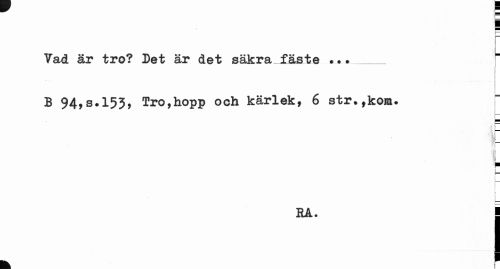 //// Yad är tro? Det är det säkra fäste _ //// B 94,s.l53, Tro,hopp och kärlek, 6 str.,kom. //// I - //// i //// S- //// L f //// f t //// EA. ¦ //// k r ////