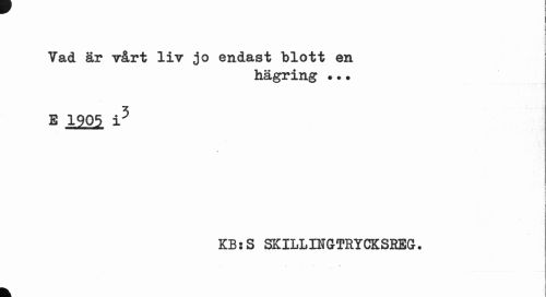 //// Jj //// : //// Yad är vårt liv jo endast "blott en //// hägring •. • //// E 1905 i5 //// i //// i s //// KB:S SKILLINGTRYCKSEEG. //// r • ¦ - r //// k ////