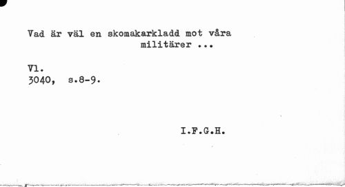//// I //// Yad är väl en skomakarkladd mot våra //// militärer ?.? //// Yl» //// 3040, s.8-9. //// X ? G«H • //// / ////