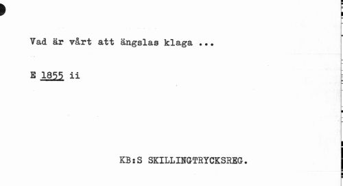//// ' ! //// Vad är vårt att ängslas klaga ... //// V V //// E 1855 ii //// 1 //// KB:S SKILLINGTRYCKSREG. j ////