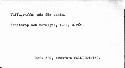 //// Vaffa,vaffa, går för sakta. //// Årbetsrop och härmljud, I-II, s.262. //// •* »-i //// REHNBERG, ARBETETS FOLKDIKTNING. | //// : ////