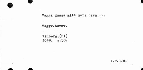 //// Vagga dus sa mitt mors barn ... //// v //// Vaggv.barnv. //// Vinberg,(Hl) 4039, s.50. //// X.P.G.H. ////