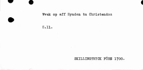 //// Wvak op sJTx Synd en tu Christendom S • XX • //// SKILLIHGTRYCK FÖRE 1700. ////