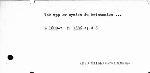 //// x___. //// *" - « . -. . „ . //// Vak upp av synden du kristendom ... Z 1600-t f} 1686 a; d 6 //// KBsS SKILLINGTRYCKSEEG. ////