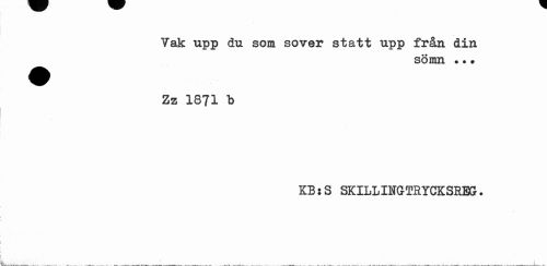 //// Vak upp du som sover statt upp från din //// sömn ••# //// Zz 1871 b //// KB:S SKILLIifG-THYGKSREG. ////