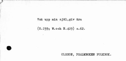 //// Vak upp min själ,giv ära //// (G.239; W.och N.429) s.62. //// OLSSON, PSALMBOKEN FOLKBOK. ////